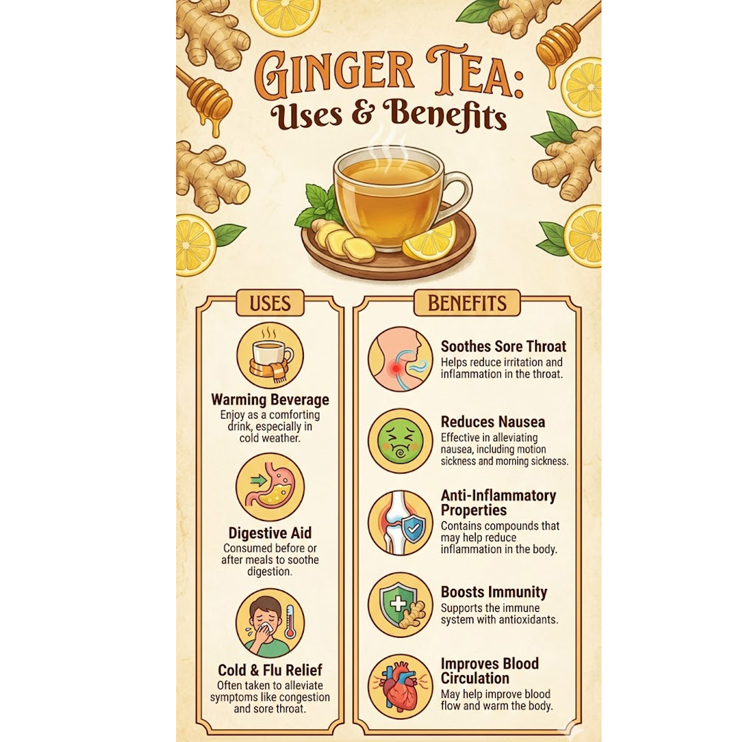 Free from artificial flavors and additives, Ginger Tea is ideal for daily consumption and can be enjoyed plain or with milk, depending on your preference.